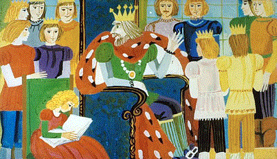 A kicsi királylányt sietett is elemészteni a háztól, falura küldte, s egy parasztasszonyra bízta, a királyfiakat meg addig szidta-gyalázta a király