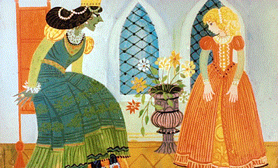 Amikor a királylány betöltötte tizenötödik esztendejét, hazavitték apja palotájába. De alighogy meglátta a mostohája, elöntötte a sárga irigység