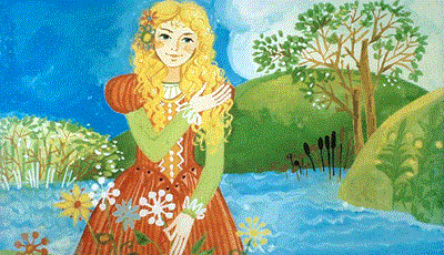 Elvezette a királylányt egy lankáig, amelynek tövében sima vizű folyó kanyargott. Két partját fák szegélyezték, sűrű lombjuk összeborult