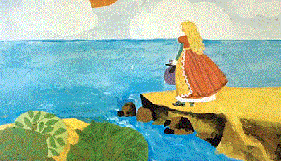 fölfordult a tenger, elkomorodott az ég, vihar támadt. A kis királylány ijedten látta, hogy hanyatlóban van a nap, a magányos sziklaszál pedig